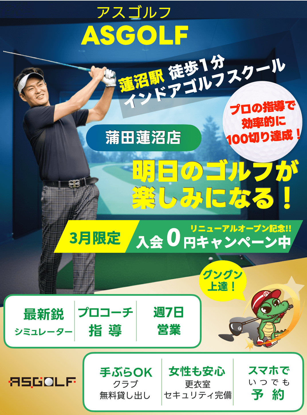 ASGOLF 蒲田蓮沼店が選ばれる理由!